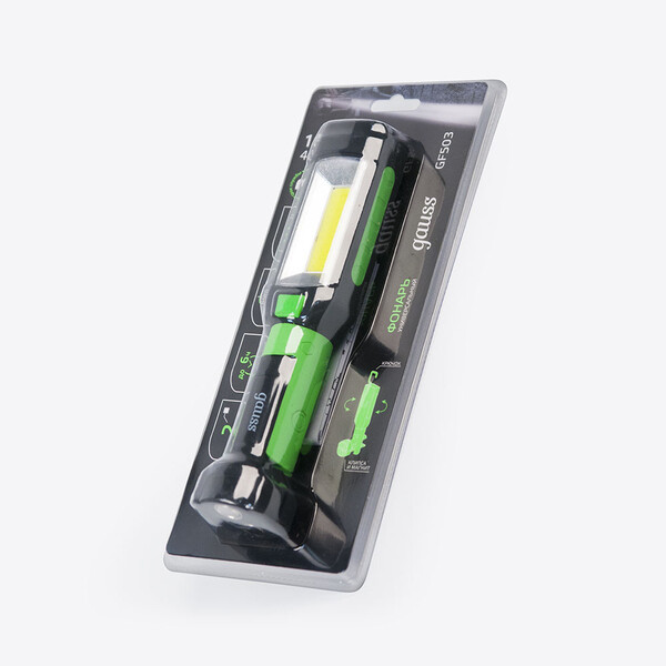 Фонарь ручной Gauss светодиодный 2 LED 10 Вт на батарейках AAA пластик 2 режима (GF503)