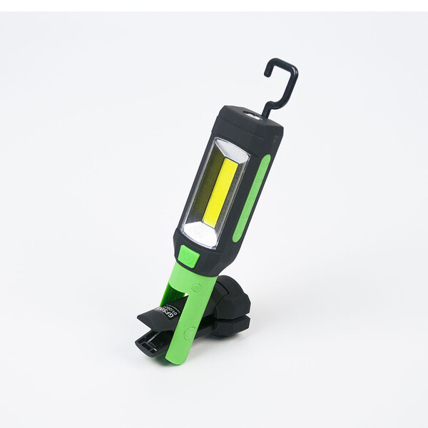 Предназначен для автономного освещения в темное время суток. Фонарь профессиональной серии светодиодный пластиковый с тремя режимами работы, а именно: режим «кемпинг» 100%, 20% и направленный луч. Подставка с регулируемым углом наклона, оснащенная мощным магнитом и подвижным крюком, которые позволяют удобно разместить фонарь для подсветки рабочей зоны. Работает в экстремальных температурных условиях, выдерживает падение с высоты 1 м. Работает от четырёх батареек типа AA. Элементы питания в комплект не входят.