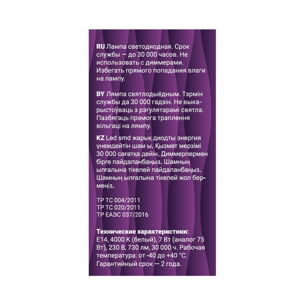 | Тип товара | Лампа светодиодная |