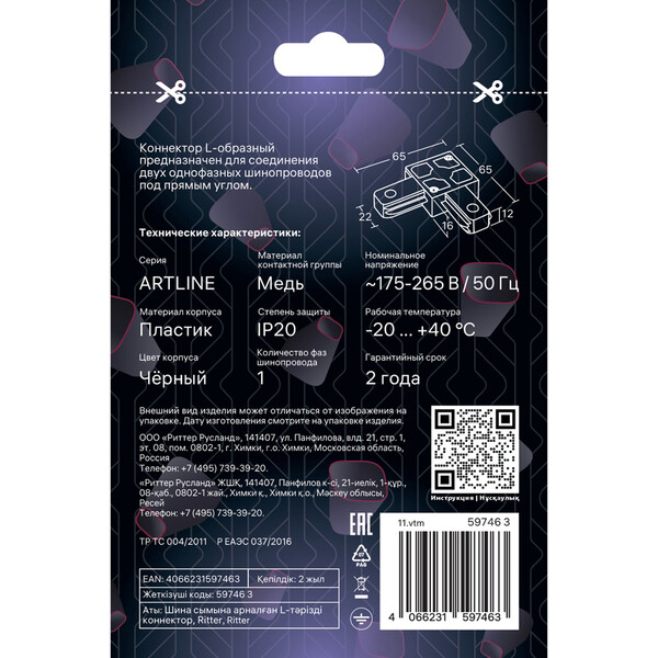 Угловой коннектор соединитель однофазного шинопровода Ritter Artline предназначен для соединения двух шин в L-образный элемент. Коннектор является неотъемлемой частью трековой системы освещения, он подключает две или несколько шин, создавая цепь питания для трековых светильников. Функциональной особенностью трековой системы освещения является возможность передвижения световой точки по линии шины. Это позволяет корректировать насыщенность света в разных частях комнаты в зависимости от интерьерных требований. Чтобы удлинить или сменить направление шины используется коннектор – соединитель шинопровода.