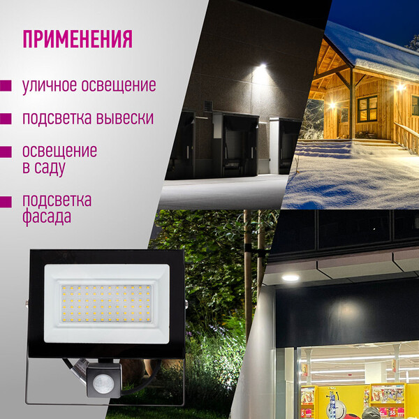 Предназначен для освещения дворов, гаражей, автостоянок, складов и т.п. Встроенный датчик движения автоматически управляет включением и выключением прожектора, позволяя значительно экономить электроэнергию без потери качества и эффективности освещения.