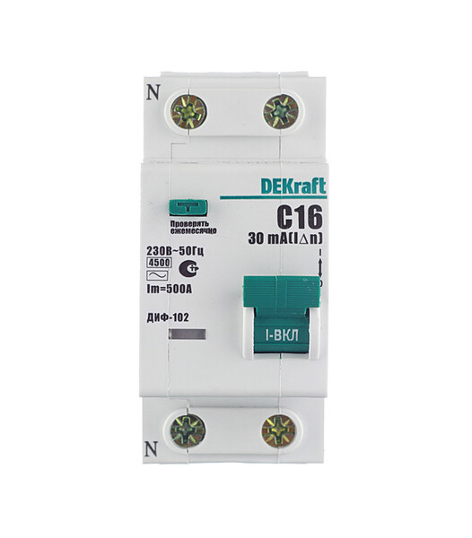 Автомат дифференциальный Dekraft ДИФ-102 16А 1P+N тип AC 30 мА 4,5 кА (16003DEK)