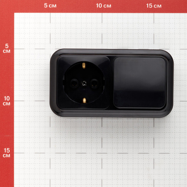 Блок выключатель и розетка Svet одноклавишный накладной черный (EV0362-5121)