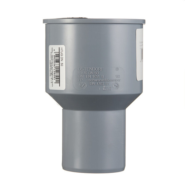 Внутренняя система канализации Ostendorf HT. Предназначен для перехода с гладкой части чугунной трубы с условным диаметром DN 50 мм или фитинга на раструб трубы или фитинга из полипропилена.