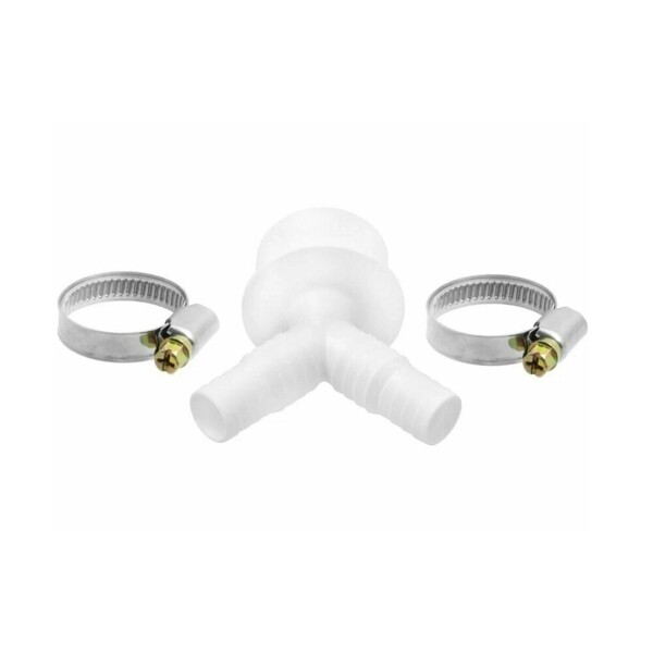 Переходник помогает присоединить сливной шланг к фитингу внутренней канализации, что обеспечивает слив воды из бытовой техники. Для прочности соединения сливного шланга с переходником рекомендуется укрепить соединение металлическим хомутом.