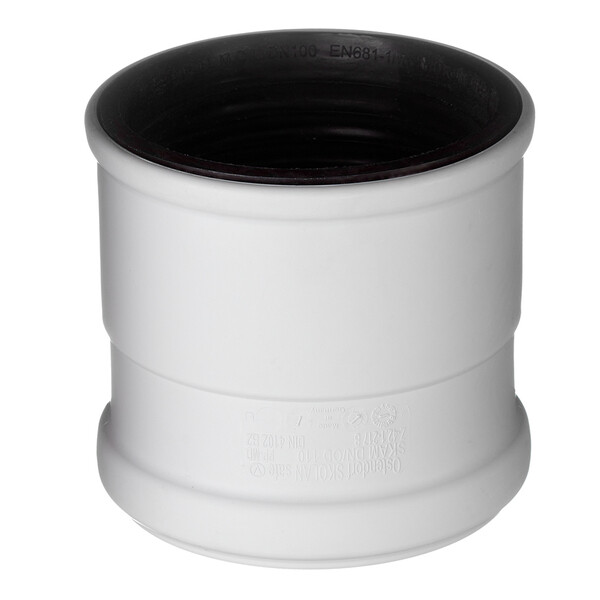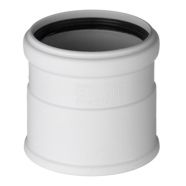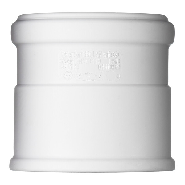 Внутренняя система бесшумной канализации Ostendorf Skolan Safe. Муфта насадная с резиновым уплотнителем на безраструбный край, предназначена для восстановления раструба на срезанном участке или безраструбном участке, монтируется поверх трубы.