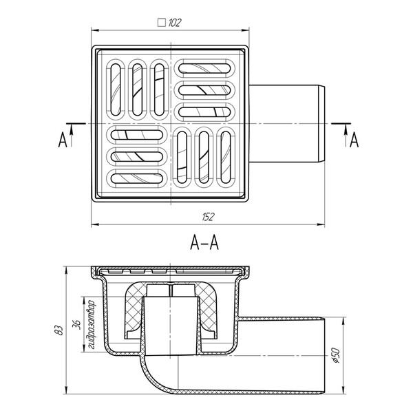 Сливной горизонтальный точечный трап с гидрозатвором и решеткой из нержавеющей стали 100x100 мм. Диаметр отвода – 50 мм, трап нерегулируемый с решеткой из нержавеющей стали 10x10 см. Трап с горизонтальным отводом имеет меньшую строительную высоту по сравнению с вертикальным трапом. Применяются, когда есть ограничения по высоте стяжки (канализационная сеть лежит под самой поверхностью). Подходит для частого использования. Элементарная поплавковая конструкция не позволит проникать запахам из канализации. Корпус выполнен из высококачественного полипропилена. Выдерживает нагрузку до 300 кг.