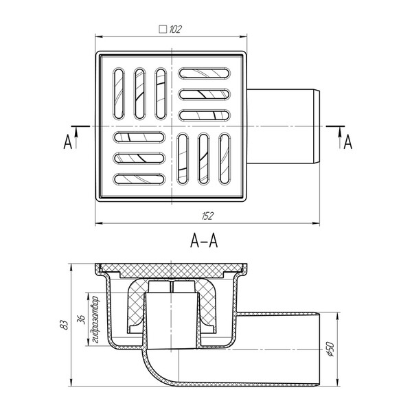 Сливной горизонтальный точечный трап с гидрозатвором и решеткой из пластика 100x100 мм. Диаметр отвода – 50 мм, трап нерегулируемый с решеткой из пластика 10x10 см. Трап с горизонтальным отводом имеет меньшую строительную высоту по сравнению с вертикальным трапом. Применяется, когда есть ограничения по высоте стяжки (канализационная сеть лежит под самой поверхностью). Подходит для частого использования. Элементарная поплавковая конструкция не позволит проникать запахам из канализации. Корпус выполнен из высококачественного полипропилена. Выдерживает нагрузку до 300 кг.