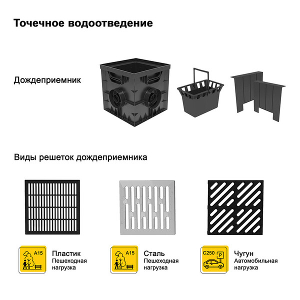 Предназначена для улавливания мусора и обеспечения простоты прочистки дождеприемника. Корзина к дождеприемнику 300х300 мм устанавливается в дождеприемник, обязательно между двух перегородок сифонных, служит для упрощения прочистки дождеприемника, собирая весь мусор из ливневых вод. Эффективно улавливает листву, хвою, песок и другой мусор. Важно помнить, что предварительная очистка стоков с помощью корзины для сбора мусора для дождеприемника упрощает прочистку и не дает засориться канализационным трубам, отводящим собранные воды из дождеприемника. Важно, приобретая корзину для дождеприемника, обязательно укомплектовать его двумя сифонными перегородками, так как только с ними корзина будет удерживаться в нужном положении и сможет эффективно улавливать мусор.