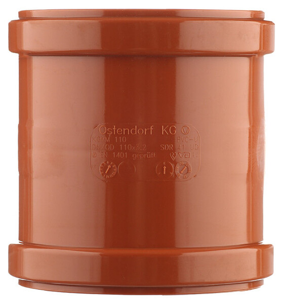 Наружная система канализации Ostendorf KG. На внутренней стенке по центру имеет порог, который обеспечивает равномерное соединение. Предназначена для соединения гладких краев труб