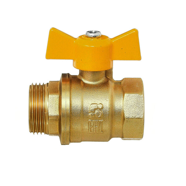 Латунный шаровый кран 11Б27П предназначен для установки на трубопроводах в качестве запорного устройства для природного газа. Материал корпусных деталей – латунь ЛС59-1 по ГОСТ 15527-2004. Материал шаровой заслонки – латунь ЛС59-1 по ГОСТ 15527-2004 с покрытием Н9Х. Управление осуществляется рычагом или «бабочкой» из алюминия марки АК-7 ГОСТ 1583-93 с покрытием эпоксиполиэфирной порошковой композицией желтого цвета. Материал уплотнений шара и штока – фторопласт (PTFE).