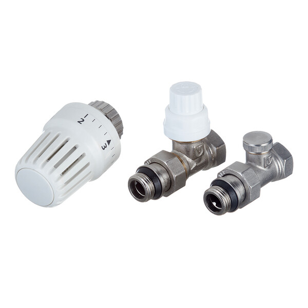 Комплект терморегулирующего оборудования VT.046 включает в себя прямые термостатический и запорно-регулировочный (настроечный) радиаторные клапаны, а также термостатическую головку. Набор предназначен для бокового подключения прибора водяного отопления, автоматического регулирования расхода теплоносителя через него в зависимости от температуры воздуха в помещении, гидравлической балансировки системы отопления. Клапаны выполнены из качественной сантехнической латуни с гальваническим покрытием и оснащены самоуплотняющимися полусгонами. Колпачок ручной регулировки на термостатическом клапане состоит из двух частей – неподвижной нижней и вращающейся верхней. Это позволяет многократно производить монтажную настройку клапана в условиях строительства (до установки термостатической головки), не переживая за целостность резьбы на пластиковом к...