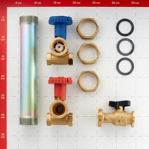 Предназначена для обвязки котлов и обеспечивает принудительную циркуляцию теплоносителя. Прямая насосная группа оптимальна как для подачи в контур отопления или кондиционирования. Насосная группа с прямым контуром (подача теплоносителя осуществляется напрямую, без подмешивания) состоит из трех запорных шаровых кранов и одного обратного клапана, двух термометров подающей и обратной линии и блочной теплоизоляции. Устанавливается непосредственно на стену в помещении. Насосная группа с прямым контуром является реверсивной (при необходимости может осуществляться обмен местами подающей и обратной линии).