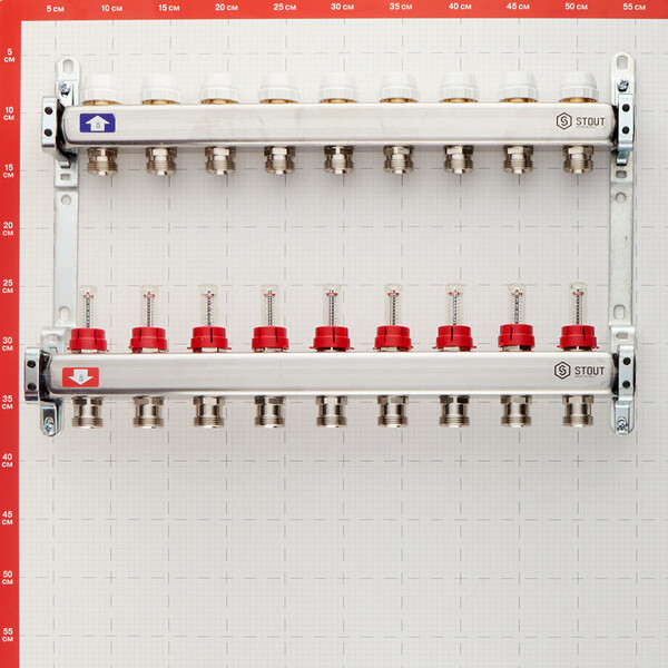 Предназначен для распределения потоков теплоносителя в системах радиаторного отопления, либо в системах водяных теплых полов. Состоит из подающего коллектора с ручными регулировочными клапанами с расходомерами и обратного коллектора с ручными термостатическими клапанами, на которые можно установить электротермические сервоприводы. Термостатические клапаны предназначены для изменения температуры отдельно в каждом контуре системы. Расходомеры обеспечивает равномерную циркуляцию теплоносителя по всей системе.