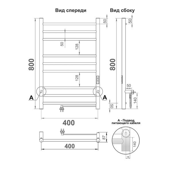 Полотенцесушитель электрический Indigo Trinity в размере 800х400 (ВхШ) выбирают за его технологичность и универсальность. Модель имеет терморегулятор нагрева, у которого три режима: 40, 45, 50 градусов и таймер на отключение через 2, 4, 6 часов. Универсальность изделия предусматривает подключение через прямой провод, который переставляется на нужную вам сторону или скрытое подключение без покупки дополнительного переходника. Длина прямого провода 1,2 метра. Изделие окрашено порошковой краской по специальной технологии. Полотенцесушитель относится к энергоэффективным изделиям, потребляемая мощность в данном размере 110 Вт. Специальная технология нагревательного кабеля защищает полотенцесушитель от перегрева, что влияет на длительные сроки службы. Изделие окрашено порошковой краской по специальной технологии. Полотенцесушитель Indigo Trin...