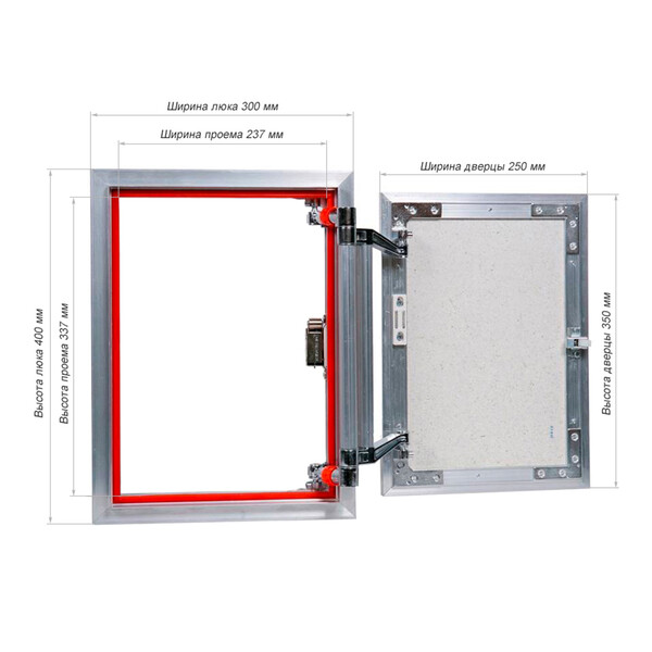 | Размер люка с рамой, мм | 300х400 |