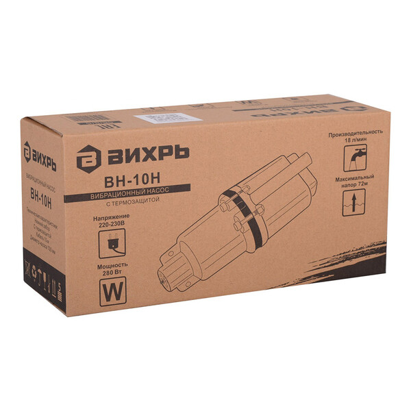 Предназначен для перекачивания воды из резервуаров и колодцев диаметром более 110 мм. Электрический двигатель мощностью 280 Вт дает напор до 72 метров и производительность до 18 л/мин. Разборные части крепко стянуты болтами. Насос требователен к качеству воды: вода должна быть чистая, без примесей и песка. Минимальное расстояние от дна колодца до насоса – 1 м. Максимальная глубина погружения составляет 3 метра.