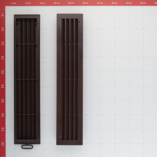 Предназначена для монтажа в полотно межкомнатных дверей, ванных комнат, туалетов, кухонь и т.д. Способствует правильной циркуляции воздуха между помещениями. Решетка состоит из двух элементов. Части решетки соединяются непосредственно друг с другом в пазы и закрепляются при помощи шурупов. Может устанавливаться в подоконники для правильного распределения теплого воздуха от батарей центрального отопления. Имеет наклонные жалюзи. Минимальная толщина дверного полотна для – 25мм. Изготавливается из высококачественного пластика коричневого цвета.