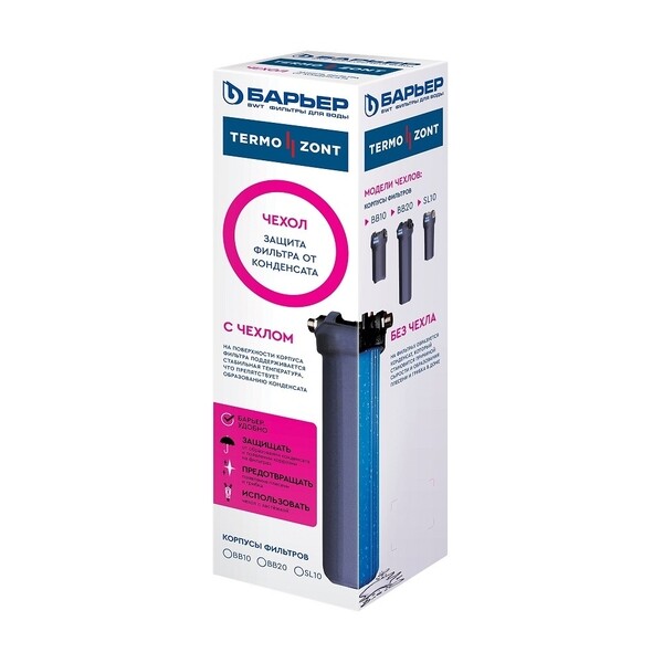 Термочехол предназначен для защиты оборудования от образования конденсата и коррозии. Снижение сырости предотвращает образование плесени и грибка в помещении. Поэтому при использовании термочехла не требуется принудительно проветривать помещения, но естественная вентиляции необходима. Чехол удобен в обслуживании. Благодаря застежкам на липучках, чехол можно установить на уже смонтированное оборудование, вам не потребуется ничего отключать. Чехол можно стирать в стиральной машине – он не теряет своих функциональных качеств. Устойчив к износу и воздействию ультрафиолета, выдерживает перепады температур и высокую влажность. Подходит для фильтров типоразмера SlimLine 10.