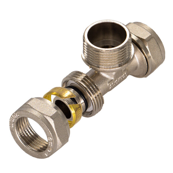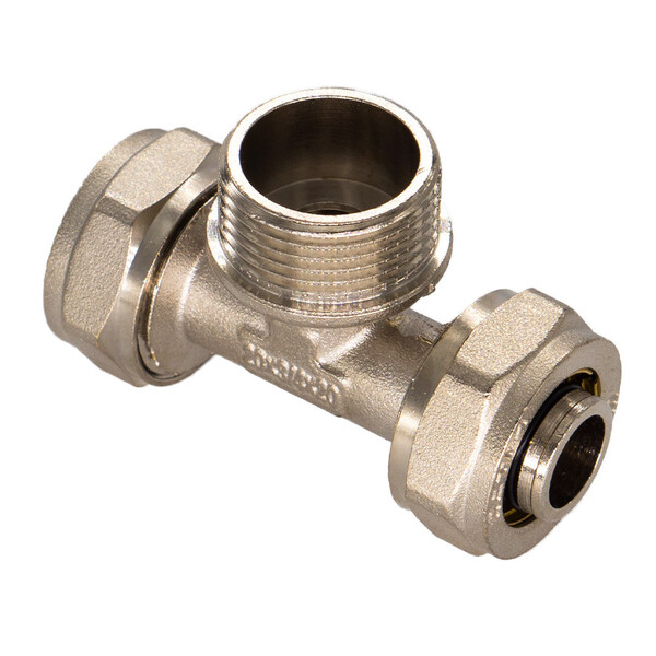 Предназначен для разветвления потока воды на два направления. Имеет два выхода для соединения металлопластиковых труб диаметром 20 мм методом обжима и один выход с наружной резьбой 3/4" (20 мм).