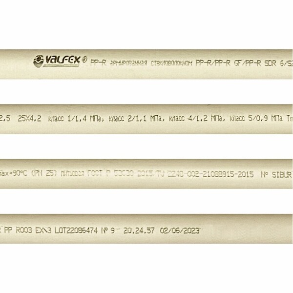 Трубы кольцевого сечения из статистического сополимера полипропилена, трехслойные, стеклонаполненные (средний слой армирован стекловолокном). Предназначены для транспортирования воды с температурой до 70°С, для хозяйственно-питьевого водоснабжения, низкотемпературного отопления, высокотемпературного отопления отопительными приборами с температурой 90°С, а также для транспортирования других жидких сред, к которым материал труб химически стоек. Производятся методом непрерывной шнековой экструзией с соэкструзией среднего слоя.