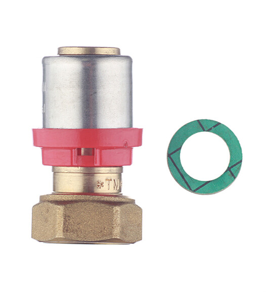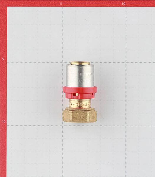 Предназначен для соединения металлопластиковой трубы диаметром 20 мм и коллектора с выходами 1/2" с наружной резьбой, имеющими плоский торец.
