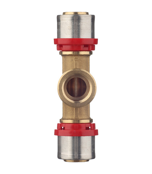 Предназначен для разветвления потока воды на два направления. Имеет два выхода для соединения металлопластиковых труб диаметром 26 мм методом опрессовки и один выход с внутренней резьбой 1/2" (16 мм).