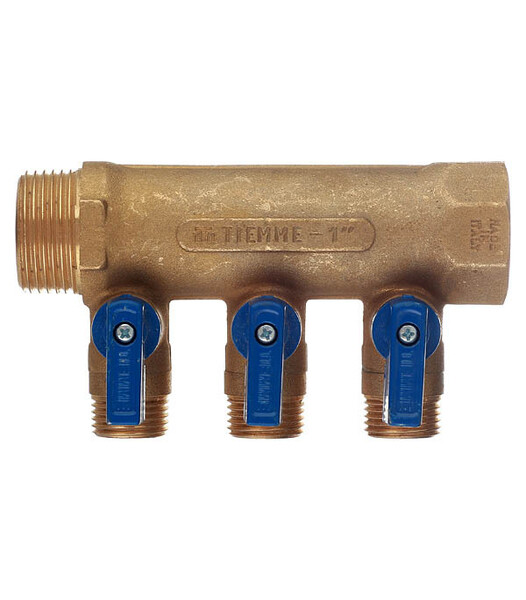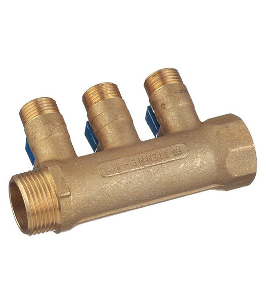 Предназначен для равномерного распределения и поступления воды от главного трубопровода по металлопластиковым трубам к сантехнике и другим потребителям без потери напора воды. Позволяет изолировать часть системы в случае неисправностей и проводить ремонт, не производя при этом общего отключения водоснабжения. Используется для разделения потока воды из одной трубы на три линии. Имеет с одного входа внутреннюю резьбу 1" (25 мм) с другого входа наружную резьбу 1" (25 мм), что позволяет соединять коллекторы между собой, увеличивая количество отводимых линий. Ручки синего цвета. Межосевое расстояние между отводами 36 мм.