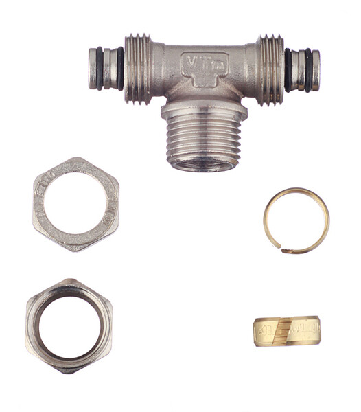 Предназначен для разветвления потока на два направления. Имеет два выхода для соединения металлопластиковых труб диаметром 16 мм методом обжима и один выход с наружной резьбой 1/2". Может использоваться в системах питьевого и хозяйственного водопровода, горячего водоснабжения, отопления, а также на технологических трубопроводах, транспортирующих жидкости, не агрессивные к материалам фитинга.