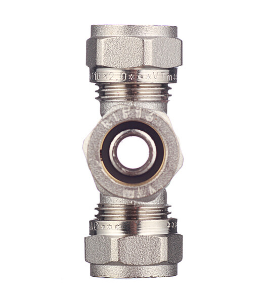 Предназначена для разветвления направления потока воды в системах водоснабжения и отопления на три направления. Используется для разъемного соединения металлополимерных труб(PEX-AL-PEX, PE-AL-PE,PEX-AL-PE,PERT-AL-PEи пр.) диаметром 16 мм методом обжима.
