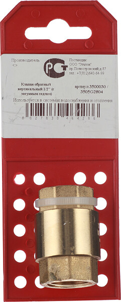 Предназначен для предотвращения изменения направления потока воды в системах водоснабжения и отопления из стальных и чугунных труб. Представляет собой устройство, пропускающее поток жидкости по трубопроводу в одном направлении и автоматически закрывающееся при перемене направления потока. Применяется в различных теплоэнергетических и технологических установках как предохранительный элемент для предотвращения поломки оборудования, при аварийной остановке насоса или компрессора, технологическом снижении давления на каком-либо участке, или разрыве трубопровода, когда поток среды изменит направление на обратное. Имеет два входа с внутренней резьбой 1/2" (16 мм).
