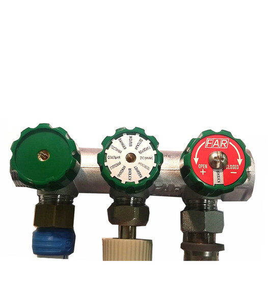 Предназначен для равномерного распределения и поступления воды от главного трубопровода по трубам к сантехнике и другим потребителям без потери напора воды.Коллекторы можно использовать как в системе горячего и холодного водоснабжения, так и в отопительных системах радиаторного и напольного отопления. Управляющая ручка расположена на передней поверхности, предоставляя пользователю легкость обслуживания без необходимости использования специального оборудования. Ручки регулирующих вентилей комплектуются двусторонними сине-красными вкладышами, которые имеют оконца, в которых с помощью вторичных вкладышей-дисков можно устанавливать наименование помещений. Особенность данного коллектора в плоском уплотнении. Через накидную гайку можно подключить любой тип трубы. В отличии от коллекторов с евроконусом к данному коллектору не требуется адапте...