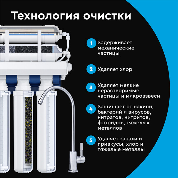 | Принцип действия фильтра | Обратный осмос |