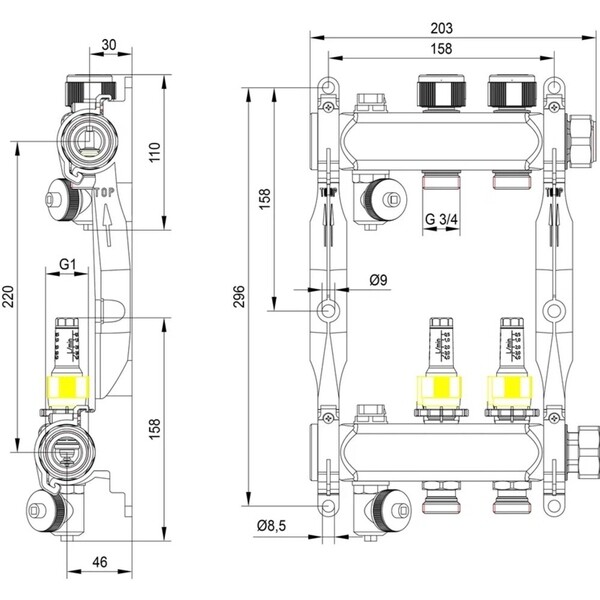 | Диаметр подключения отвода, дюйм | 3/4 |