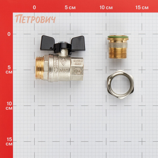 Предназначен для полного открытия или закрытия потока воды. Наличие сгона позволяет монтировать и демонтировать кран без демонтажа трубопровода. Чаще всего устанавливается перед радиаторами отопления. Длина – 98 мм. Корпус – латунь с никелированным покрытием, шар – латунь с хромированным покрытием.