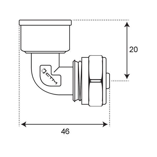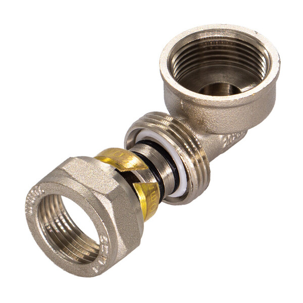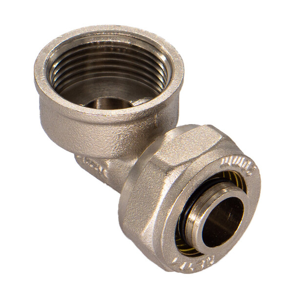 Предназначен для изменения направления металлопластиковой трубы диаметром 20 мм на 90º с переходом на резьбовое соединение 1/2" (16 мм) с внутренней резьбой.