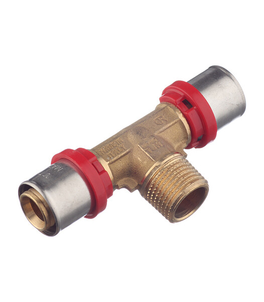 Предназначен для разветвления потока воды на два направления. Имеет два выхода для соединения металлопластиковых труб диаметром 20 мм методом опрессовки и один выход с наружной резьбой 1/2" (16 мм).