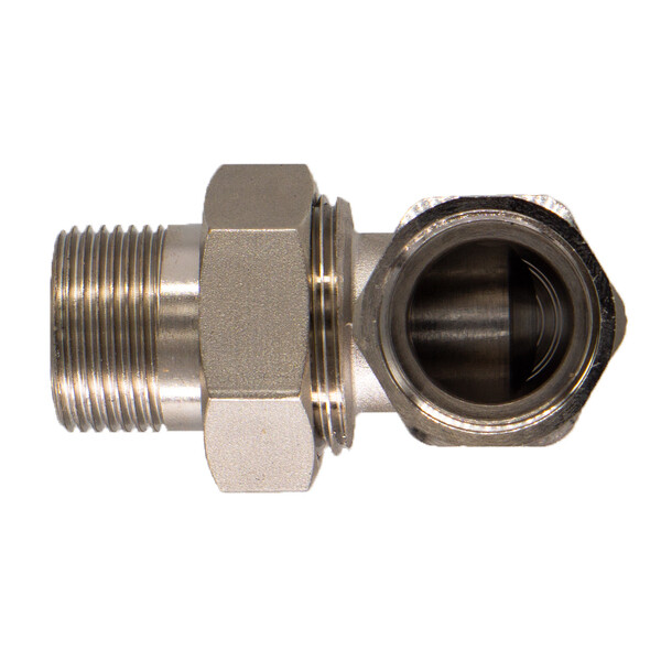 Предназначена для создания углового разъемного соединения в системах водоснабжения и отопления. Имеет внутреннюю резьбу 1/2" (16 мм) с одной стороны и наружную резьбу 1/2" (16 мм) с другой. Принцип соединения – конус с кольцевой прокладкой. Для монтажа потребуются "усики".