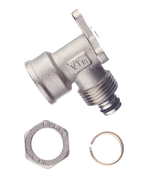 Предназначена для создания разъемного обжимного соединения трубопроводов из металлополимерных труб(PEX-AL-PEX, PE-AL-PE,PEX-AL-PE,PERT-AL-PEи пр.) диаметром 16 мм в системах питьевого и хозяйственного водопровода, горячего водоснабжения, отопления, а также на технологических трубопроводах, транспортирующих жидкости, не агрессивные к материалам труб и соединителей. Фитинг представляет из себя угольник с креплением (водорозетка) и переходом на внутреннюю резьбу 1/2". Резьба фитинга – внутренняя трубная по ГОСТу 6357.