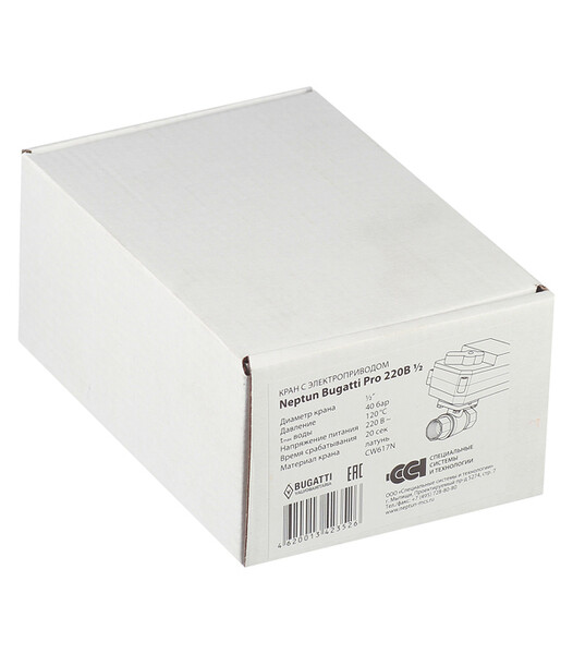 Компактные шаровые краны с электроприводом серии Neptun Bugatti Pro могут использоваться в системах контроля протечки воды, системах обогрева, фанкойлах, тепловых насосах или установках с автоматически регулируемой подачей холодной и горячей воды. Рабочие жидкости – вода или любая жидкость, совместимая с P.T.F.E. Длина соединительного провода – 0,5 м. Потребляемая мощность – 1.4 Вт.
