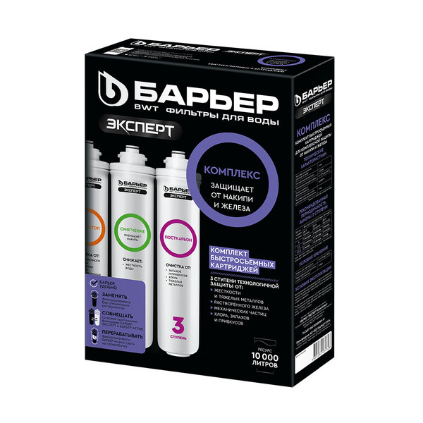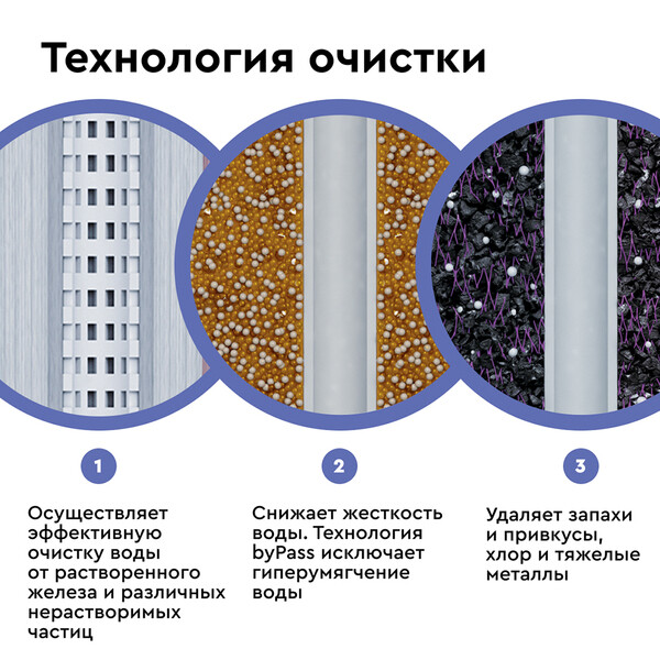 Предназначен для эффективной комплексной очистки воды с повышенным содержанием солей жесткости и железа. Уникальная технология Ferrostop дает превосходный результат очистки от железа при высоких концентрациях: до 5 ПДК. Благодаря технологии ByPass жесткость воды после фильтрации имеет оптимальный уровень для здоровья. Гарантия от протечек: все соединения в системе выполнены с использованием Push-In фитингов, которые обеспечивают легкость подключения и 100% гарантию от протечек. Уникальная система SmartLock: самозапирающаяся система предотвращает откручивание фильтроэлемента, когда фильтр находится под давлением. Шарнирная система крепления фильтроэлементов позволяет устанавливать его под любым доступным пользователю углом.