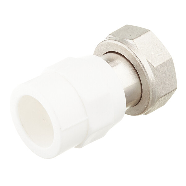 Предназначена для соединения полипропиленовой трубы и компонента инженерной системы с резьбовым подключением. Монтаж осуществляется с помощью накидной гайки. Резьба – внутренняя трубная по ГОСТу 6357. Предусмотрен участок корпуса под гаечный или трубный рычажный ключ.
