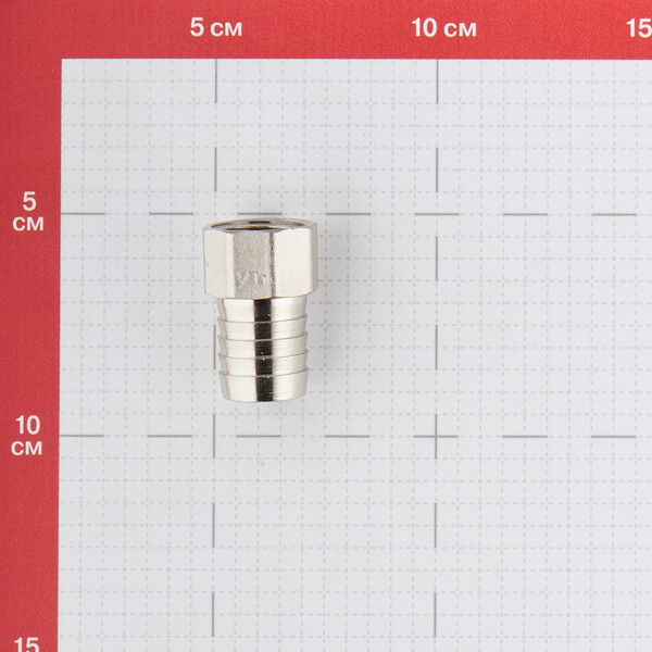 Предназначен для подключения к водозапорной арматуре, непосредственно к трубопроводам поливочного шланга. Штуцер для шланга с внутренней резьбой изготовлен из высококачественной сантехнической латуни марки CW617N методом горячего прессования с нанесением защитного гальванического покрытия (никель). Резьба фитинга – дюймовая, диаметром 1/2 или 3/4". Размеры штуцера – от 10 до 20 мм (с шагом 2 мм). Соединитель позволяет подключить шланг (поливочный либо другого назначения) к стальной трубе с нарезанной резьбой или патрубку водопроводной арматуры с наружной резьбой напрямую.