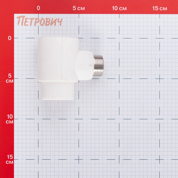 Тройник полипропиленовый коллекторный с наружной резьбой можно применить для изготовления коллекторов: сваривая фитинги друг с другом, монтажник получит распределитель потоков с необходимым числом выходов (межцентровое расстояние – 53–54 мм). Благодаря разборным соединениям использовать такое изделие бывает удобнее, чем готовый полипропиленовый коллектор с отводами под приварку PPR-труб. Корпус тройника выполнен из полипропилена PPR100, закладная резьбовая деталь – латунная (марка сплава – CW617N, способ изготовления – горячее штампование), никелированная. Диаметр патрубков под муфтовую сварку (внутренний/наружный) – 40 мм, резьбы – 3/4".