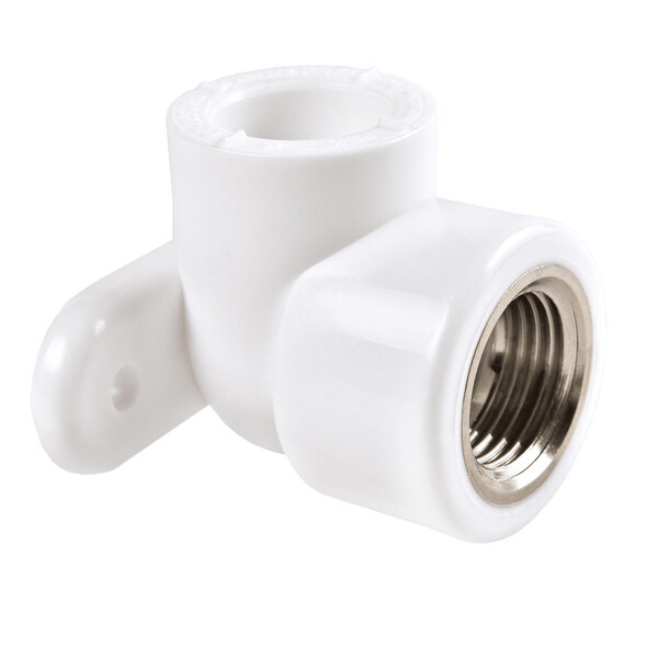 Предназначен для соединения полипропиленовой трубы и резьбового фитинга под углом. Крепится к стене с помощью существующих технологических проушин.