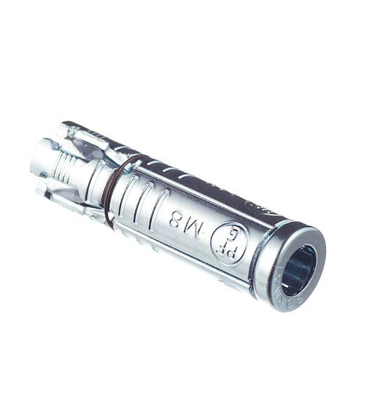 Предназначен для монтажа тяжелых и умеренно тяжелых элементов и конструкций в таких материалах, как бетон, полнотелый кирпич и природный камень. Анкер имеет большую зону расклинивания, которая позволяет производить монтаж в основания низкого качества, например, при работах в зданиях старой постройки, а также, когда сложно определить структуру материала основания. Крепление детали осуществляется болтом или штангой с резьбой. Изготовлен из оцинкованной стали. Представляет собой 4-х лепестковую распорную гильзу с резьбой на внутренней части.