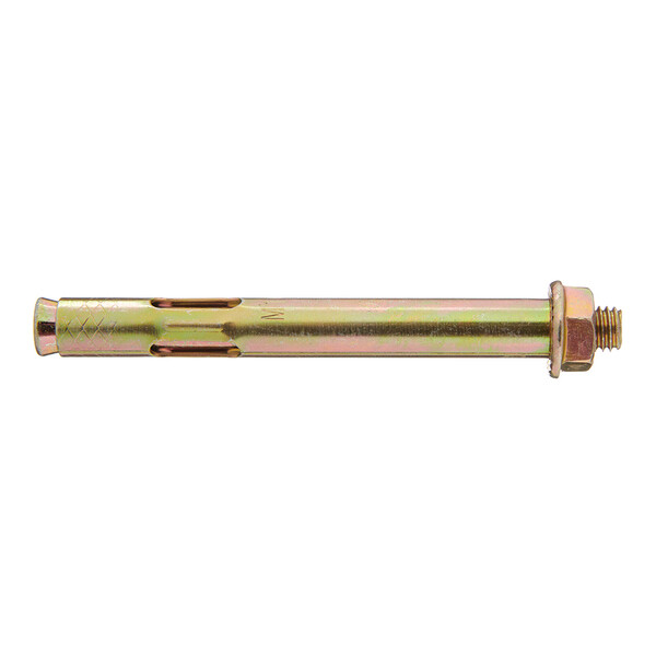 Предназначен для крепления различных конструкций – отбойников, лифтов и подъемников, колонн и опор, фахверков, элементов фасадных конструкций и прочих элементов к основанию из бетона, природного камня или полнотелого кирпича. Оцинкованное покрытие обеспечит защиту от коррозии. Анкерный болт с гайкой (втулочный анкер) оснащен фиксирующей гильзой, длина которой равна размерам стального стержня. На хвостовой части шпильки выполнена клинообразная головка. При завинчивании гайки она смещается по резьбовой части. В результате перемещения происходит распирание втулки. Конструктивные особенности такого вида крепежа позволяют использовать его в легких видах бетонов с ячеистой структурой, а также в кирпиче, изготовленном из обожженной глины.