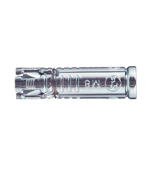 Предназначен для монтажа тяжелых и умеренно тяжелых элементов и конструкций в таких материалах, как бетон, полнотелый кирпич и природный камень. Анкер имеет большую зону расклинивания, которая позволяет производить монтаж в основания низкого качества, например, при работах в зданиях старой постройки, а также, когда сложно определить структуру материала основания. Крепление детали осуществляется болтом или штангой с резьбой. Изготовлен из оцинкованной стали. Представляет собой 4-х лепестковую распорную гильзу с резьбой на внутренней части.