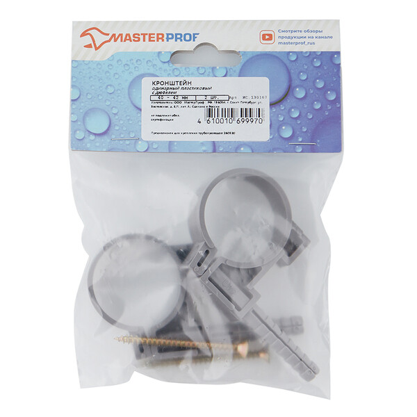 Предназначен для крепления к основанию канализационных труб диаметром 40-42 мм. Расстояние между хомутами должно составлять – для горизонтальных линий 10 диаметров прокладываемой трубы; для вертикальных линий (для стояков) 1-2 м.