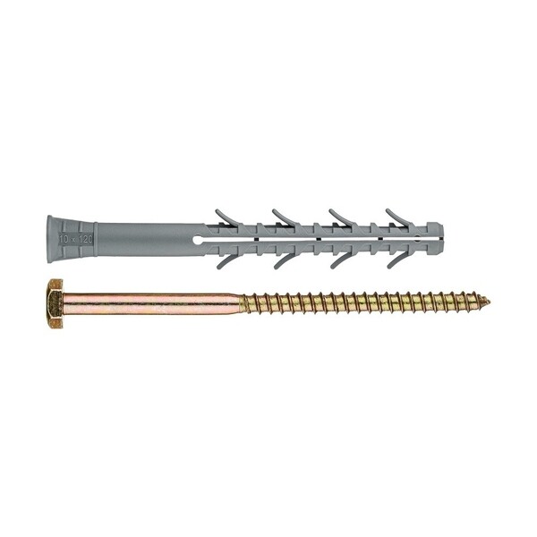 Дюбель фасадный предназначен для крепления строительных материалов, изделий и оборудования к наружным и внутренним элементам конструкций зданий и сооружений различного назначения. Предназначен для средненагруженных конструкций. Материал применения – бетон, полнотелый и пустотелый кирпич, силикатный кирпич, ячеистый бетон и пустотелые керамзитобетонные блоки, шлакоблоки. Имеет потайной бортик, позволяющий надежно зафиксировать средненагруженные конструкции, имеющие раззенкованные отверстия или с возможностью утопить головку крепежа в закрепляемом материале. Наличие стопорных усиков позволяет дюбелю не прокручиваться в пустотелых основаниях. Применяется для сквозного монтажа. Шуруп, входящий в комплект, изготовлен из электрооцинкованной стали, что позволяет использовать дюбель в условиях слабой агрессивной среды.
